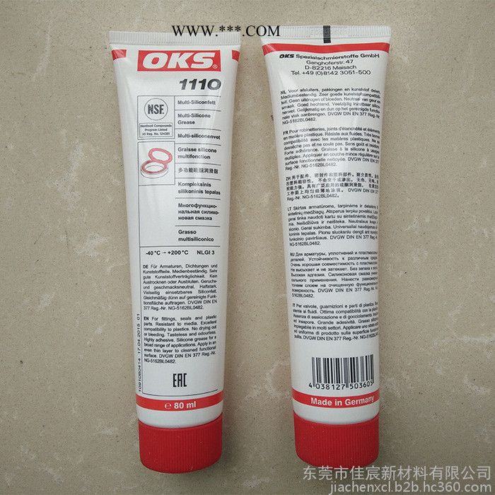 OKS1100-多用途硅脂应用领域:适用于冷热水、暖气阀门和管道的密封和润滑,亦可用于汽车的冷却系统,O型圈、油封的装配,能兼容各类塑料和橡胶。可用作阻力油,提供缓冲、锁紧、微调、抗磨、润滑等功能,具有良好的防水性能。可用于啤酒、饮料行业罐封机齿轮的密封、润滑。优点:高效能,能粘附在各类材料的表面。长效润滑和密封作用,不干固、不硬化、不渗出。使用温度范围广,能与塑料、橡胶等兼容。使用方法:为获得佳的使用效果,应认真清洁润滑点,可使用例如OKS2610和OKS2611通用清洗剂等。在润滑点表面刷涂一层薄涂层,避免过量。应遵从轴承和设备制造商所附说明书的建议。根据运转情况确定再润滑的频率和数量。如有其它疑问,请联系我们的技术部门。工作温度:-40℃——+20
