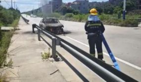 7月16日9时许广州市119指挥中心接到警情海珠区南燕二街一辆新能源汽车着火消防员迅速赶赴现场经过近一小时的扑救现场明火被扑灭灭火后,为防止复燃消防员继续对车辆进行冷却据媒体报道,车主梁先生表示开车行驶到南洲北路时前车盖突然炸响随后冒出浓烟他本想下车到后备