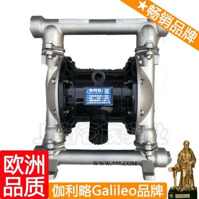 伽利略Galileo气动隔膜泵是一种输送机械,采用空气压缩机压缩空气为动力源,对于各种腐蚀性液体,带颗粒的液体,高粘度、易挥发、易燃、剧毒的液体,均能予以抽光吸尽。共有八种规格直径:¢10mm(3/8")、¢15mm(1/2")、¢25mm(1")、¢40mm( 1 1/2")、¢50mm(2")、¢65mm( 2 1/2")、¢80mm(3")、¢100mm(4")。材质:铝合金、铸铁、不锈钢、塑料。隔膜泵根据不同液体介质分别采用丁晴橡胶、氯丁橡胶、氟橡胶、聚四氟乙烯。以满足不同用户的需要。该泵自投产以来,已被国内一千多家石油、化工、电子、陶瓷、纺织、油漆、制药机械系统单位采用,安置在种特殊场合,用来抽送各种常规泵不能抽吸的介质,且替代齿轮泵的理想产品,均取的了满意的效果。