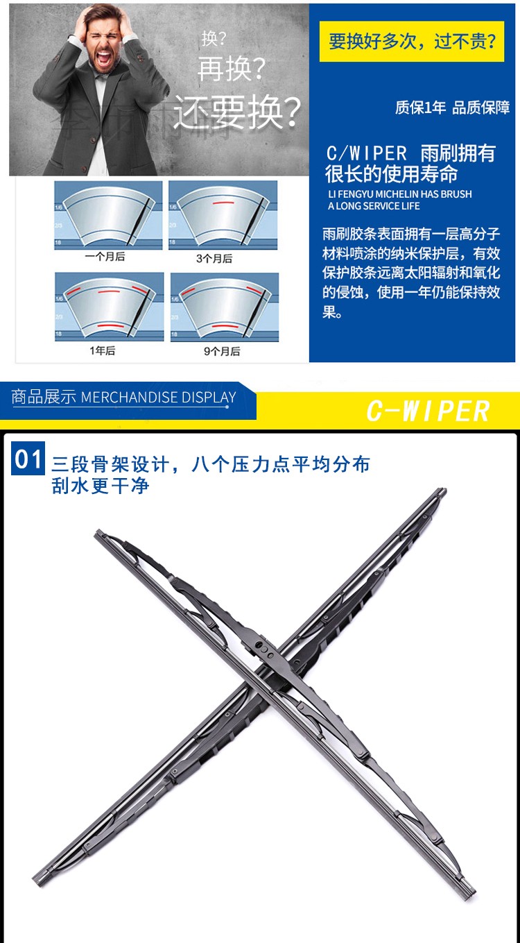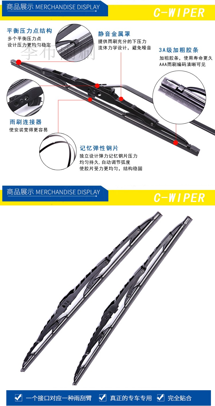 通用U型汽车有骨雨刷14 16 17 18 19 20 21 22 24 26寸雨刮器片条