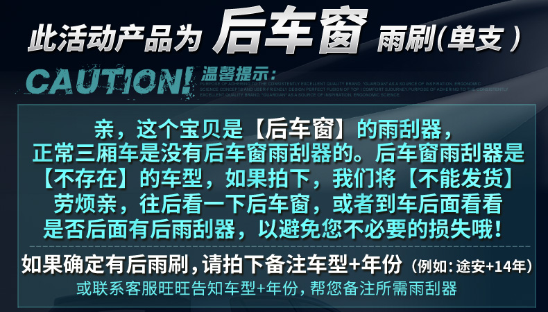 ,支持千款车型,我们只要知道【车型+年份】例如:高尔夫6+2012年款,就能保证给您发原车标准的无骨后窗雨刮器!!