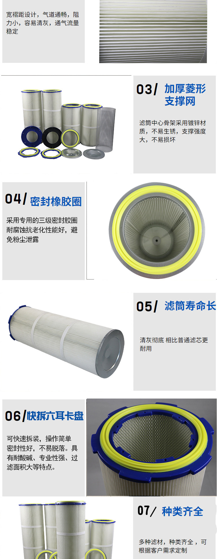 工厂批发喷涂喷塑涂装 静电喷涂快拆式除尘滤芯 六耳除尘滤筒