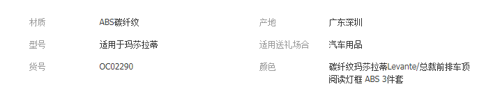 深圳车涯 适用于玛莎拉蒂Levante/总裁前排车顶阅读灯框 ABS3件套