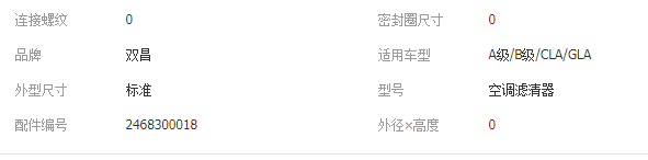 适配奔驰A级B级A180 B200 CLA级CLA200 GLA260空调滤芯2468300018