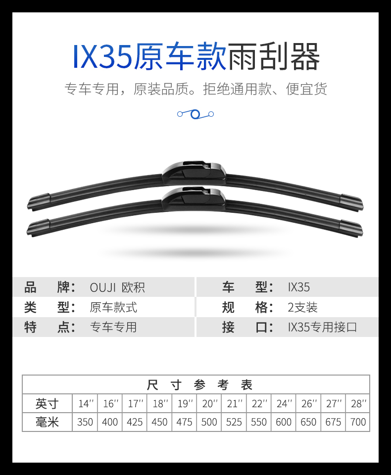 适用北京现代ix35雨刮器18款汽车原厂原装无骨胶条前后雨刷条片