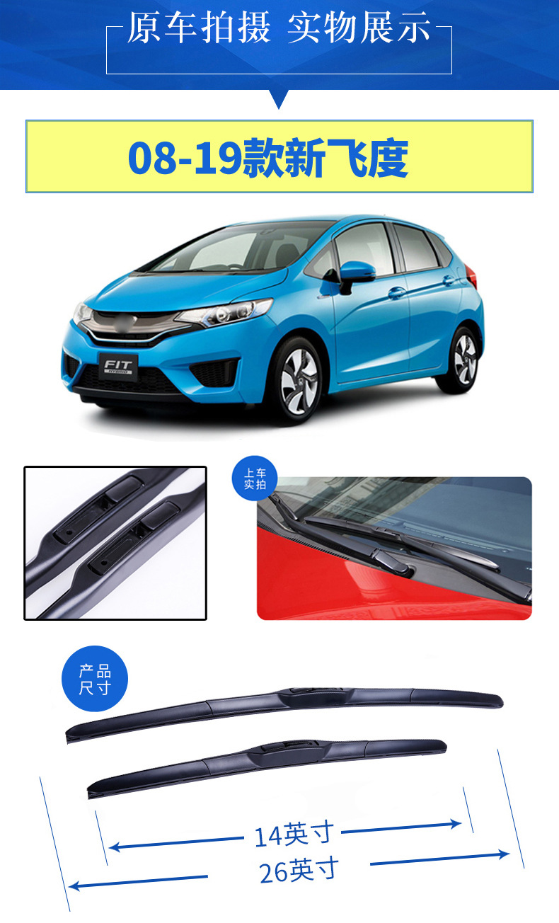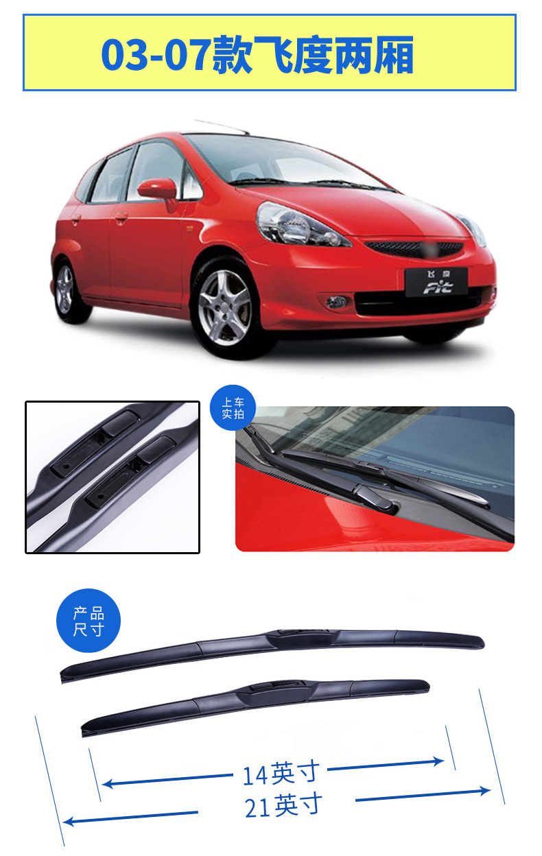 适用本田飞度雨刮器胶条原厂老款07两厢三厢08有骨2014前后雨刷条