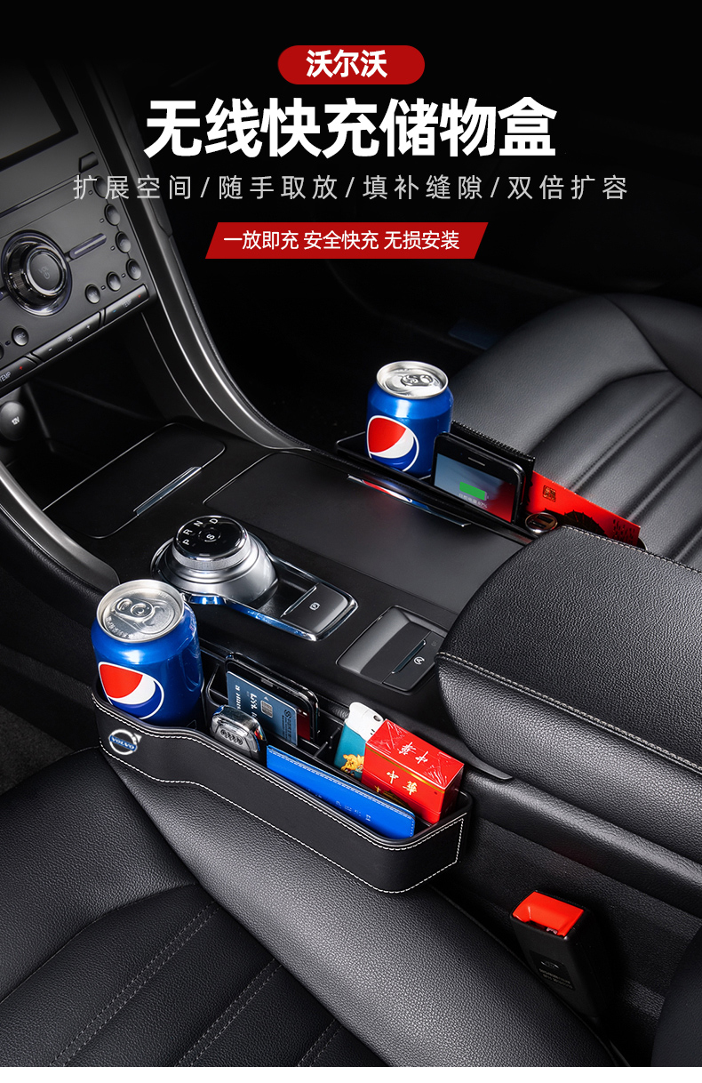 沃尔沃汽车座椅夹缝收纳盒无线充电车内车载座缝隙置物格装饰用品