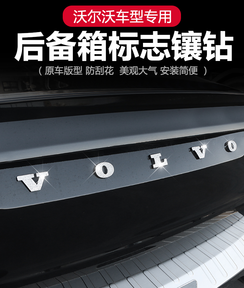 沃尔沃XC60S90XC90S60V60V90CCXC40后备箱标尾标装饰镶钻改装用品