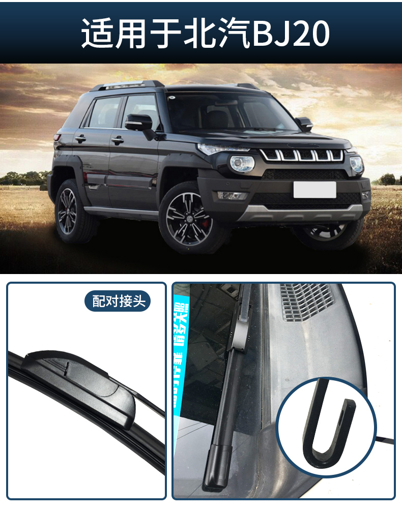 适用于北京汽车BJ20专用雨刮器原厂原装16-18无骨前后雨刷胶条片