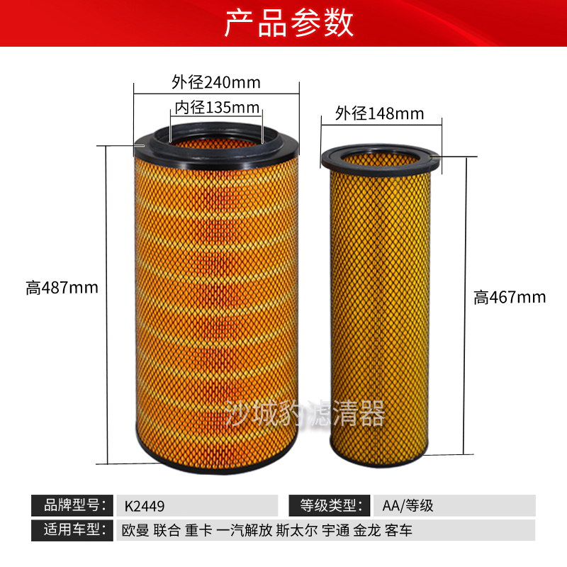 K2449空滤适用 欧曼 联合 重卡 一汽 解放 宇通 金龙 客车 空气格