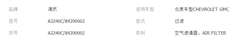 A3240C/84390002北美车型CHEVROLET GMC 空气滤清器OEM加工定制