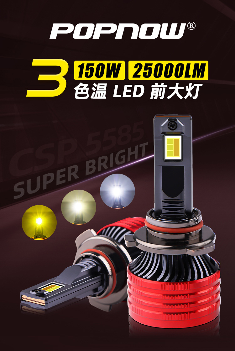 三色led汽车大灯h4 h7汽车前照灯改装车灯大功率远近一体大灯批发