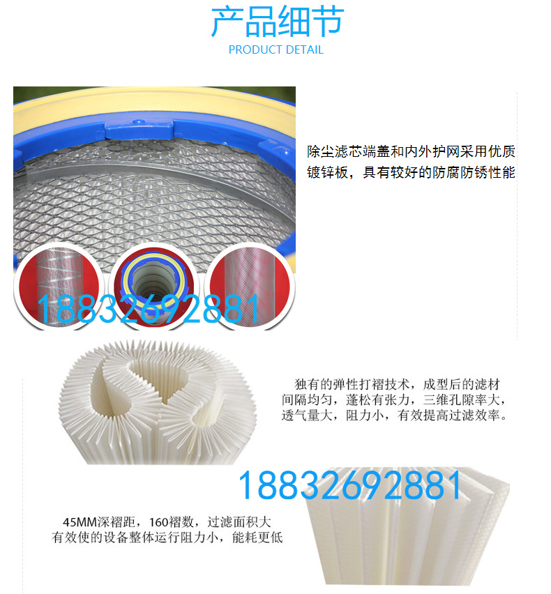 喷涂卡盘快拆除尘滤筒覆膜除尘滤芯阻燃滤筒加工定做批发厂家