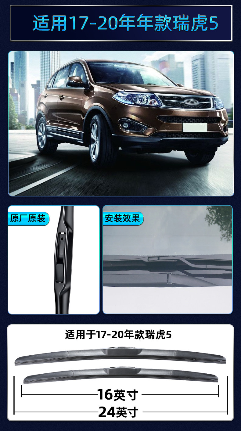 奇瑞瑞虎5雨刮器胶条片原装16原厂5X无骨15瑞虎五2014款前后雨刷