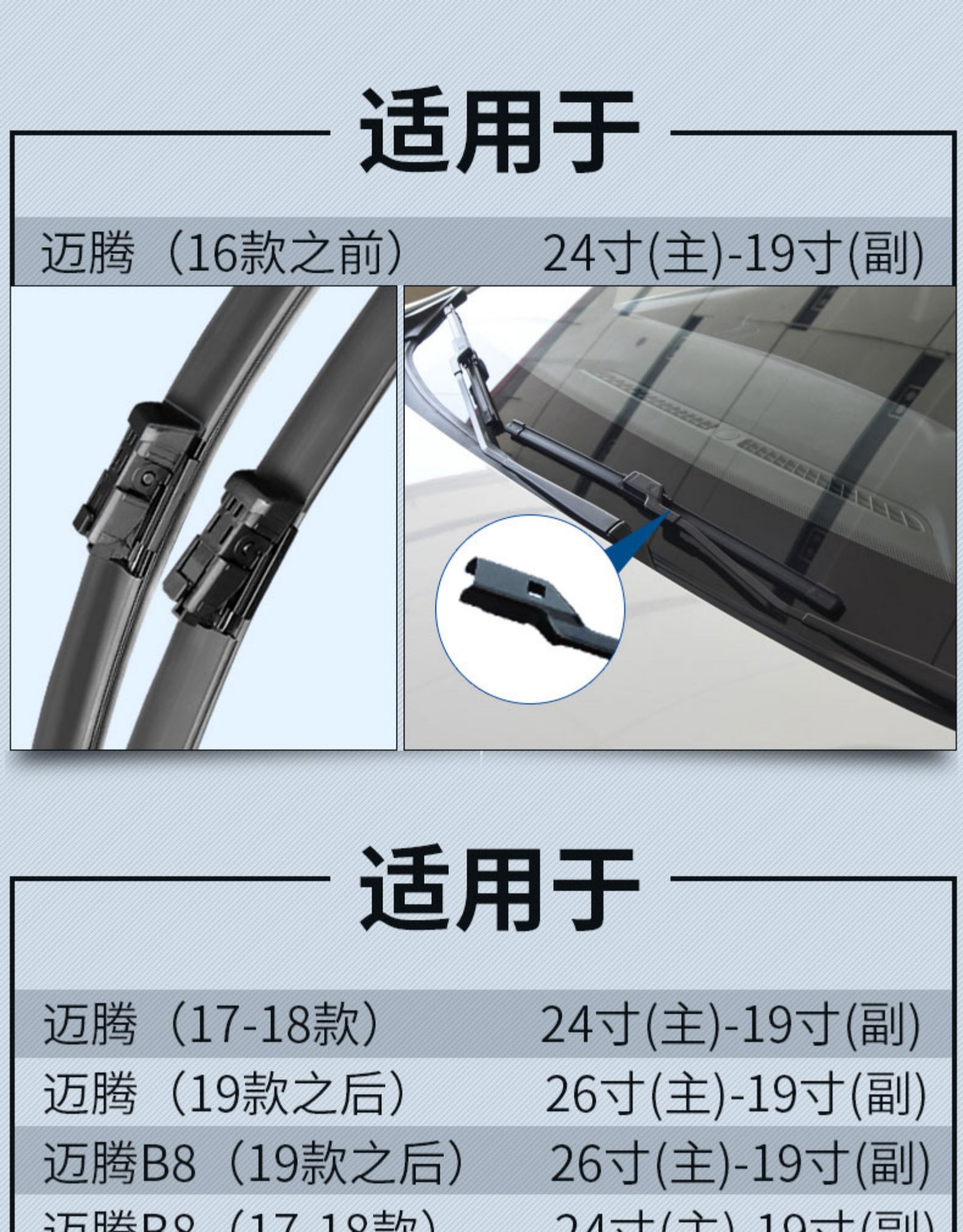 一汽大众迈腾B8雨刮器原装B7雨刷片原厂无骨汽车专用15胶条17款13