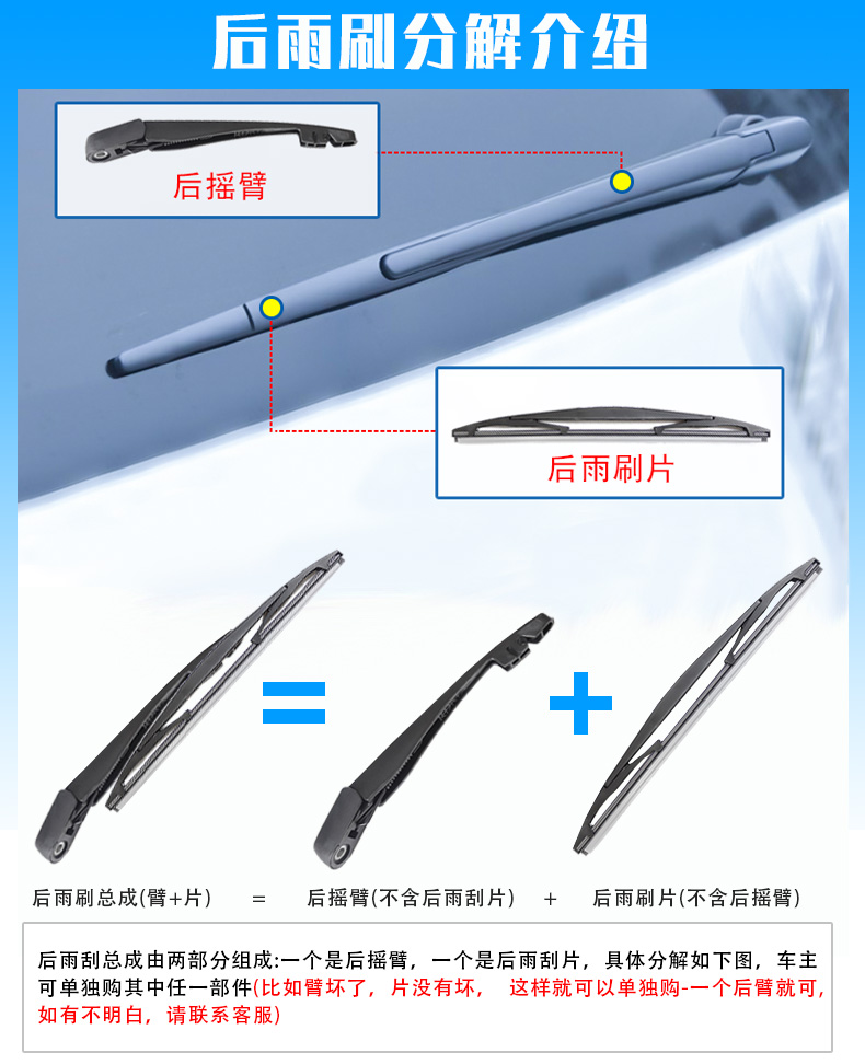 适用广汽传祺GS4后窗雨刮片GS5速博GS3 7 8无骨雨刷器条摇臂总成