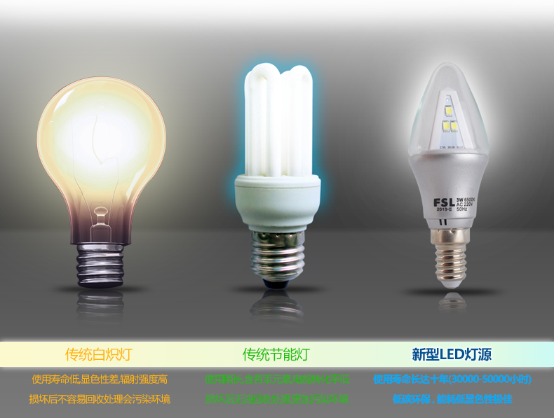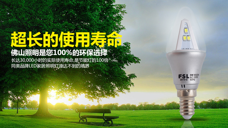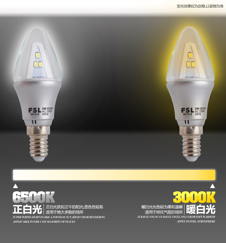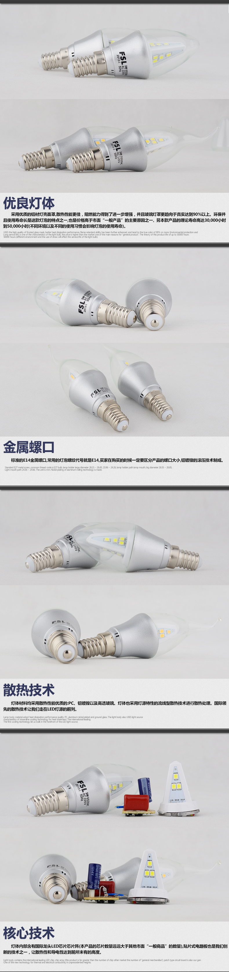 佛山照明LED节能灯泡 E14小螺口尖泡 尖头蜡烛拉尾灯泡3w水晶灯