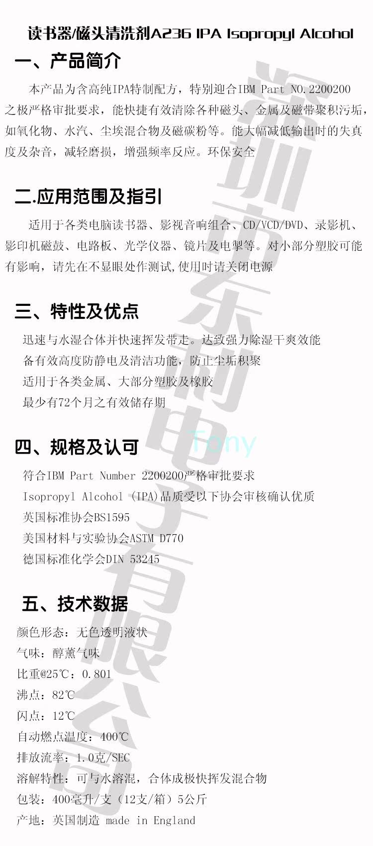 AMBERSIL英国安柏斯IPA 读数器磁头镜片清洗剂 异丙醇清洗剂A236
