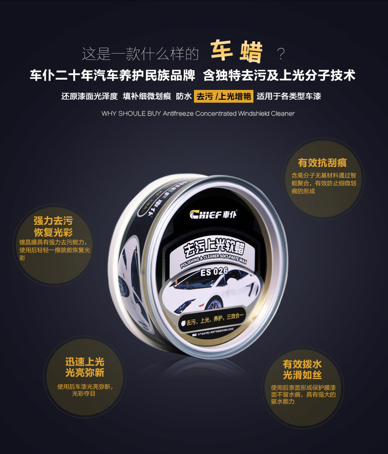 车仆/chief 划痕修复车蜡 去污上光养护三效合一软蜡(1