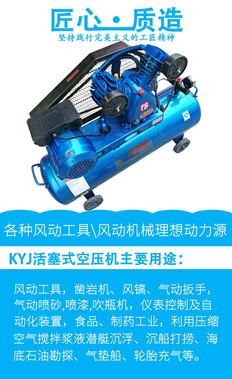 风冷移动式空气压缩机(以下简称空压机),是根据中国特定的气候和环境条件,贴近中国人的审美观点而研制的新型供气设备,作为一般用动力气源,具有以下之显著特点: