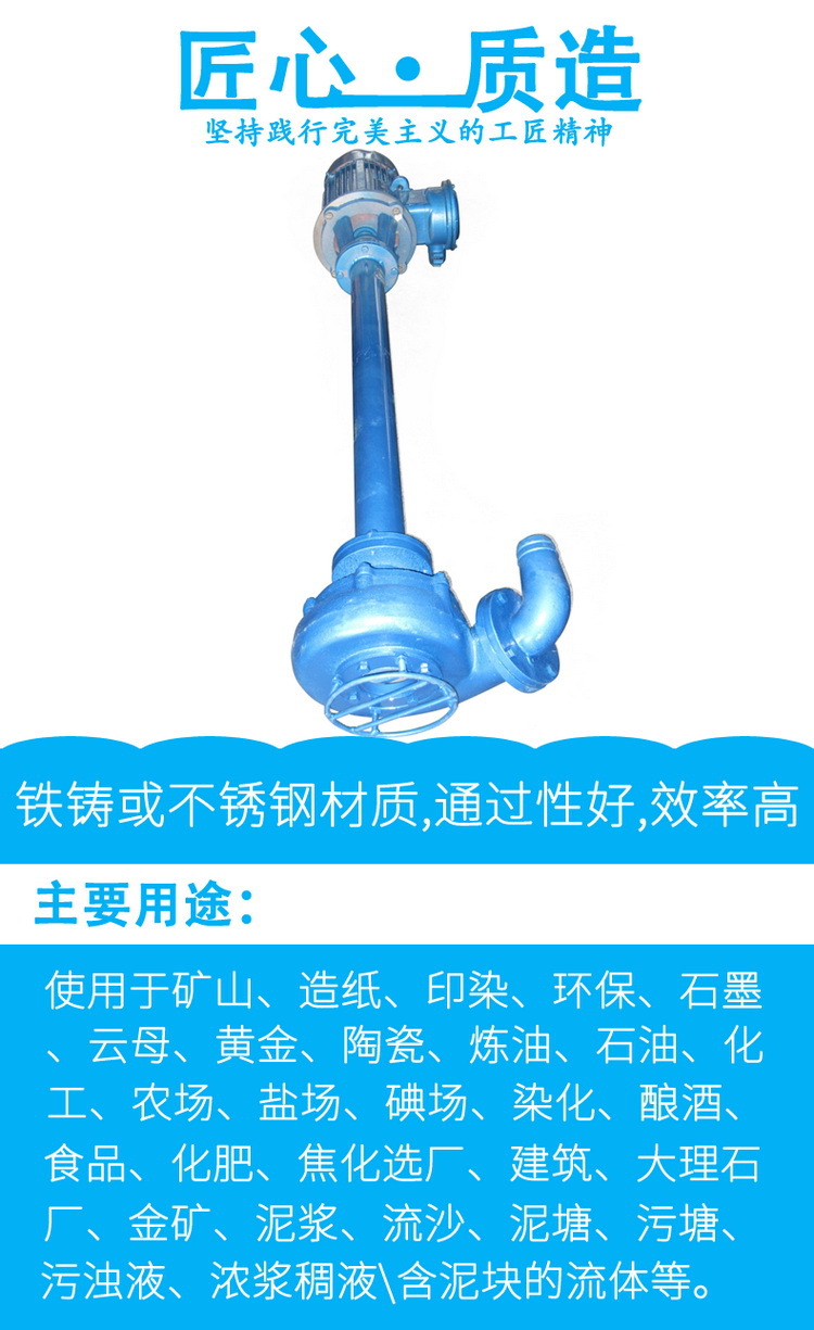 1、NL系列多用液下泵系单级单吸离心泵,使用于矿山、造纸、印染、环保、石墨、云母、黄金、陶瓷、炼油、石油、化工、农场、盐场、碘场、染化、酿酒、食品、化肥、焦化选厂、建筑、大理石厂、金矿、泥浆、流沙、泥塘、污塘、污浊液送吸浓浆稠液、装料及悬浮物质的污水作业,也可作煤矿排水及含有泥块的流体。