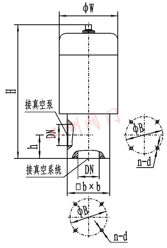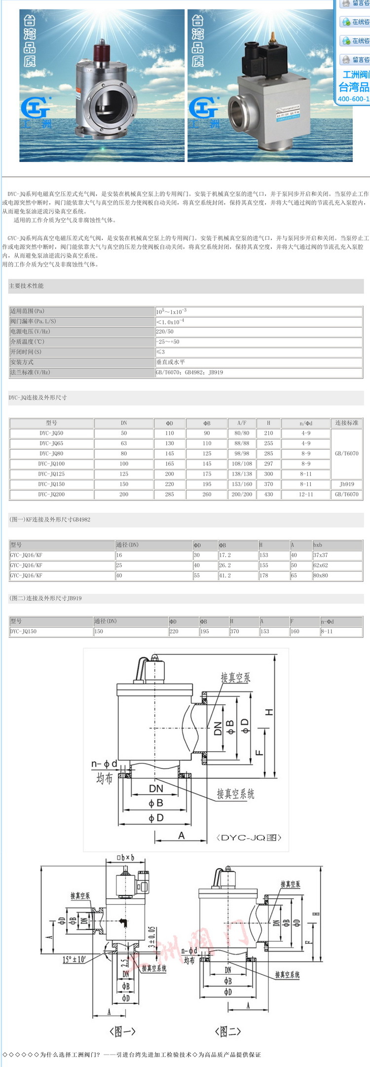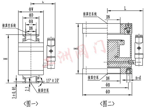 注:快卸及活套法兰连接方式请参阅DDC-JQ-B系列电磁真空带充气阀(内有DN100规格).