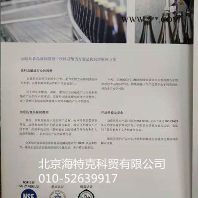 ⒊用于饮料行业传输链条的特种润滑油 Klüberfood NH1 C4-58 ISO VG -46