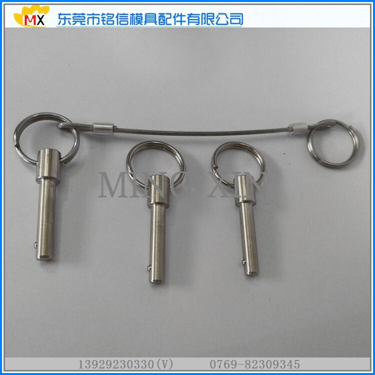 快锁插销主要应用于快速连接、接挂部件,在中国市场上,常见客户类型从事音箱制造,机场地面设施制造,夹具制造,航空制造,快速搭桥铺路、OEM设备制造,等等。 具有**的径向抗剪能力,应用在关键部位的连接,是设备安全的可靠保证。 使用特点: Q型快卸销,属于重型制动销,适用于对轴向锁紧要求不高,且对剪切力要求较高的场合。