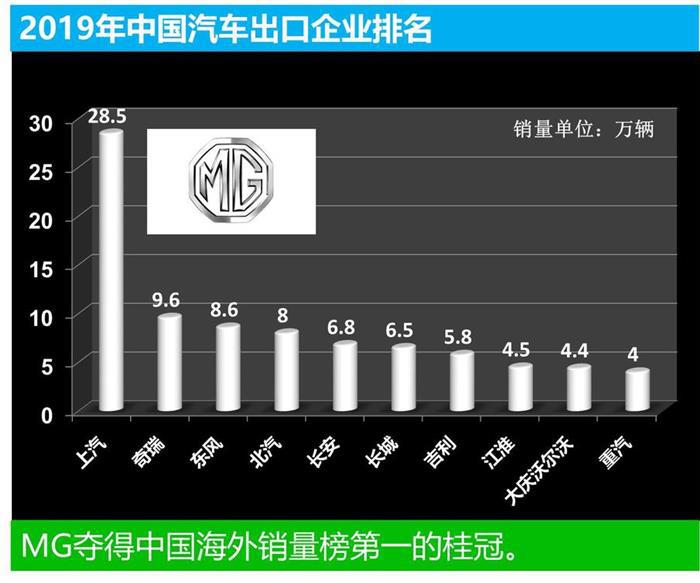 此后MG花落中国,通过上汽的精心经营,逐步绽放芬芳。2019年上汽海外出口28.5万辆,其中MG品牌成为了“中流砥柱”,海外销量达13.9万辆,占据了整个上汽集团海外销量的半壁江山。 墙内开花墙外香,MG上汽的国际化经营下,不仅国内有突破,也开始在国外赚钱了。