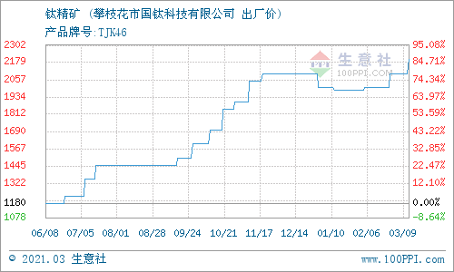 生意社:3月10日国钛科技钛精矿最新报价