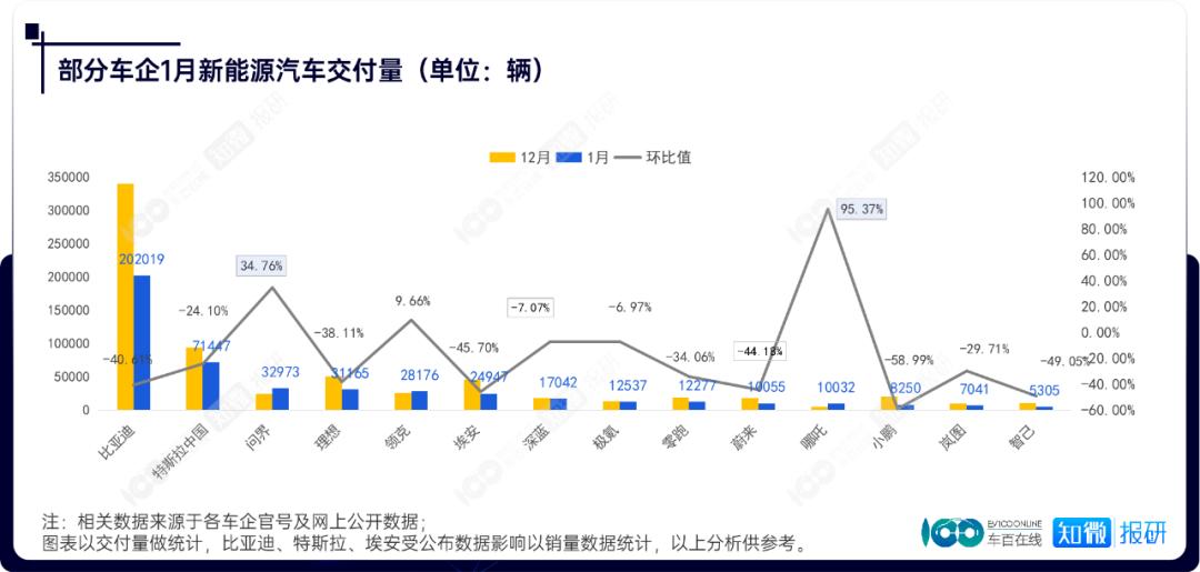 1月新能源汽车行业市场冷热切换,销量普遍下滑。比亚迪、吉利、特斯拉等企业纷纷在智能化、产品规划、市场拓展等方面推出新举措。同时,华为×东风岚图、蔚来×江淮、奇瑞及宁德时代×滴滴等企业的“结盟”也备受市场关注。