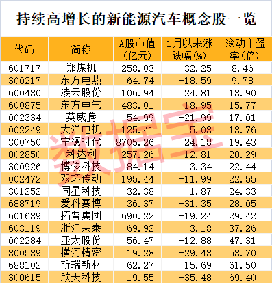 A股市场上,布局新能源汽车产业链的概念股众多,合计超过380只,截至5月15日收盘,A股市值合计达到5.52万亿元。不过在众多概念股中,业绩持续高增长的股票仍属稀缺。据证券时报·数据宝统计,2021年~2023年净利润增速均超20%的新能源汽车概念股仅18只。