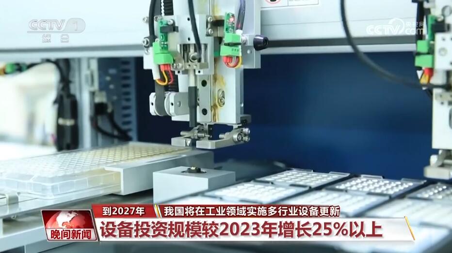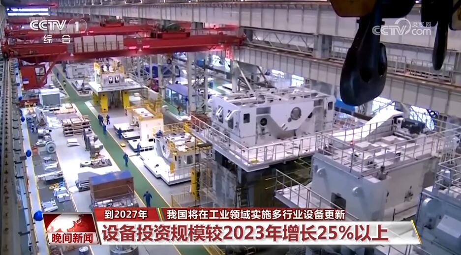 工业和信息化部等七部门日前推出工业领域设备更新实施方案,明确到2027年,我国工业领域设备投资规模较2023年增长25%以上。