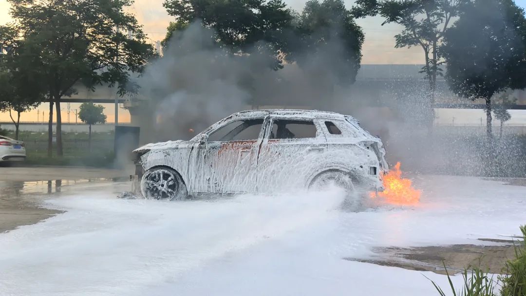 2023年12月,广东广州,一辆小车着火。经了解,该车为上午刚购买的二手车。