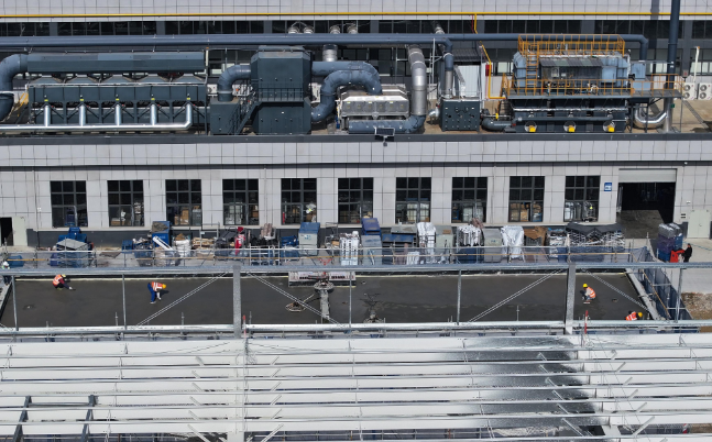 工作人员在肥西汽车关键零配件产业园项目工地里施工(无人机照片)(肥西县委宣传部供图)