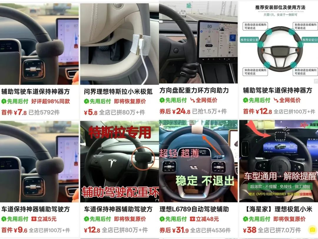 但是近日,上海市消保委汽车办关注到一些智能驾驶“脱手神器”线上狂售百万单的新闻,相关产品号称可以规避车辆的驾驶安全监测系统,让司机真正“解放双手”。殊不知这些各式各样的网售“智驾神器”,已完全破坏驾驶的安全条件。