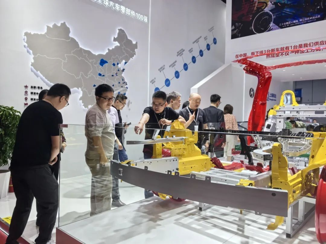 秉持“规模第一、利润第二”的经营发展理念,海联金汇以“努力奋斗迈进全球零部件100强”为主题参展,在聚光灯之下,由公司自主研发的汽车车身、底盘及内饰相关零部件协奏、共鸣,完美组成了一辆完整的“汽车”。这背后凝聚着中国汽车产业半个多世纪以来砥砺前行的创业汗水,也是当下中国新能源汽车走向世界最有力的名片。