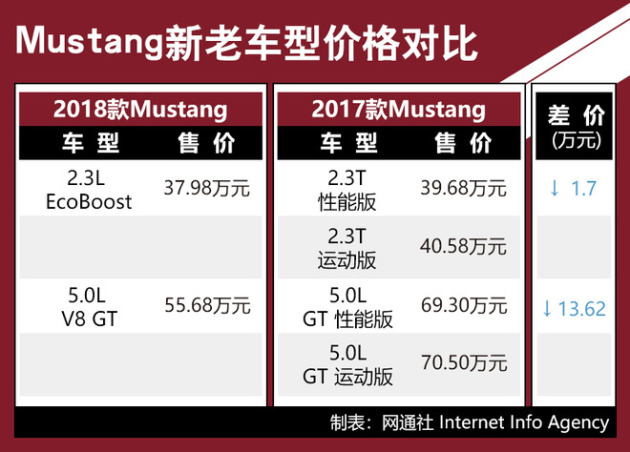 2018款福特Mustang在经过整车进口关税下调后,2.3T车型由40.38万元调整为37.98万元;而5.0L V8 GT车型更是由59.18万元下调到了55.68万元。对于一些向往大排量自然吸气的车迷来说离梦想又近了一步,这也或许是目前可以买到最便宜的V8肌肉跑车了。