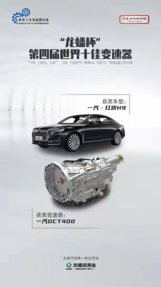 汽车评价:3月27日,由汽车评价研究院主办的“龙蟠杯”第四届世界十佳变速器评选结果正式出炉。本次评选中,一汽DCT400变速器荣获“世界十佳变速器”荣誉称号,同时获奖车型是一汽红旗H9,可谓中国智造的杰出代表作。