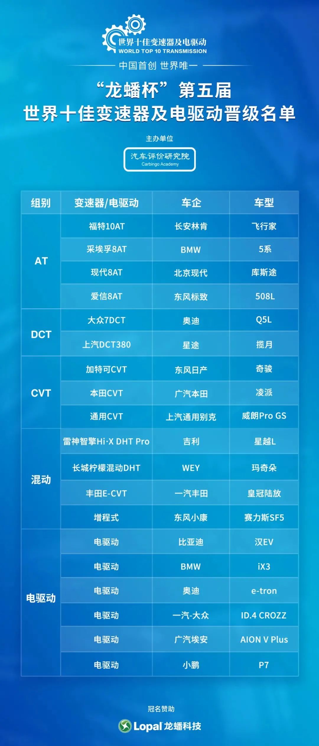 正是在这样大的背景和技术趋势下,本届评选得到了全面的升级,正式更名为“龙蟠杯”第五届世界十佳变速器及电驱动评价,评价的产品全面涵盖了“自动变速器、混合动力变速器、电驱动总成”。