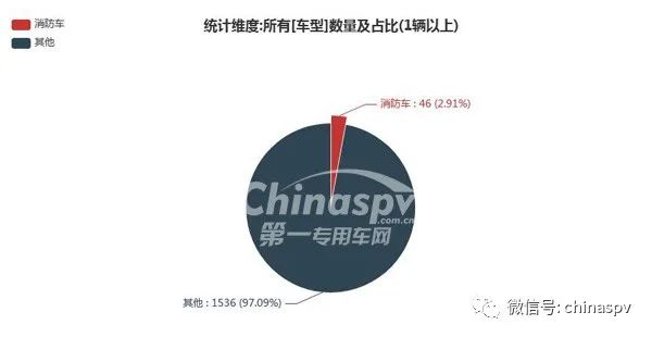 第353批新车产品公示中的1582辆产品中,消防车(46辆,占比2.91%)。
