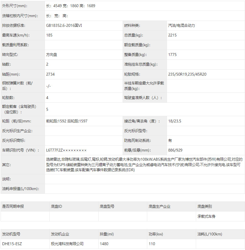 动力方面,申报信息显示新将搭载由三缸1.5T发动机和电动机组成的混动系统,其中发动机最大功率为150马力,电动的参数还没有公布。