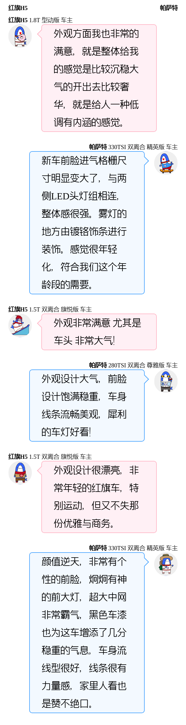 | 指标名称 | 红旗H5 | 帕萨特 |