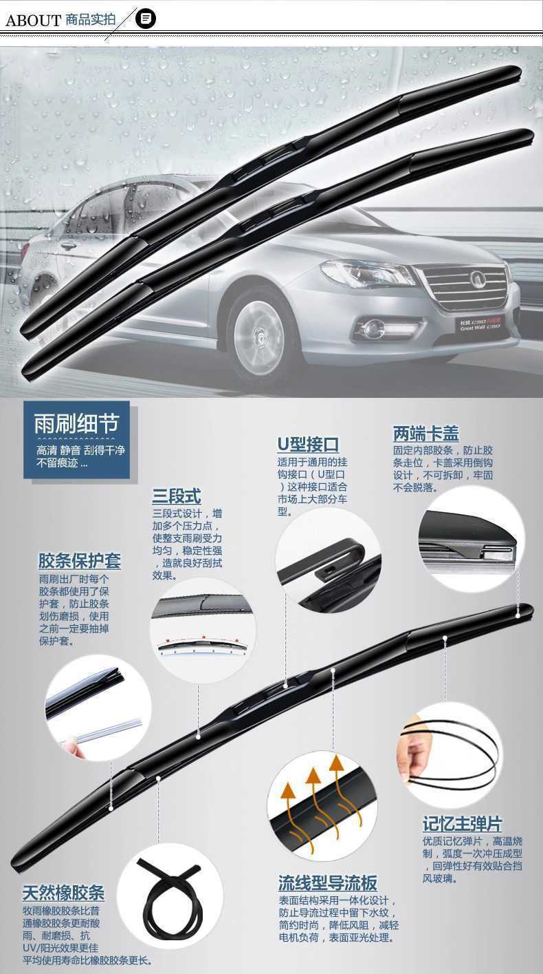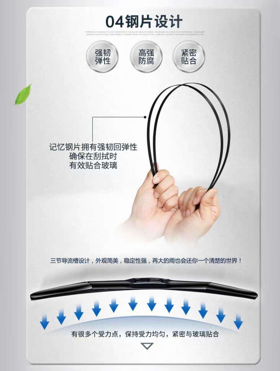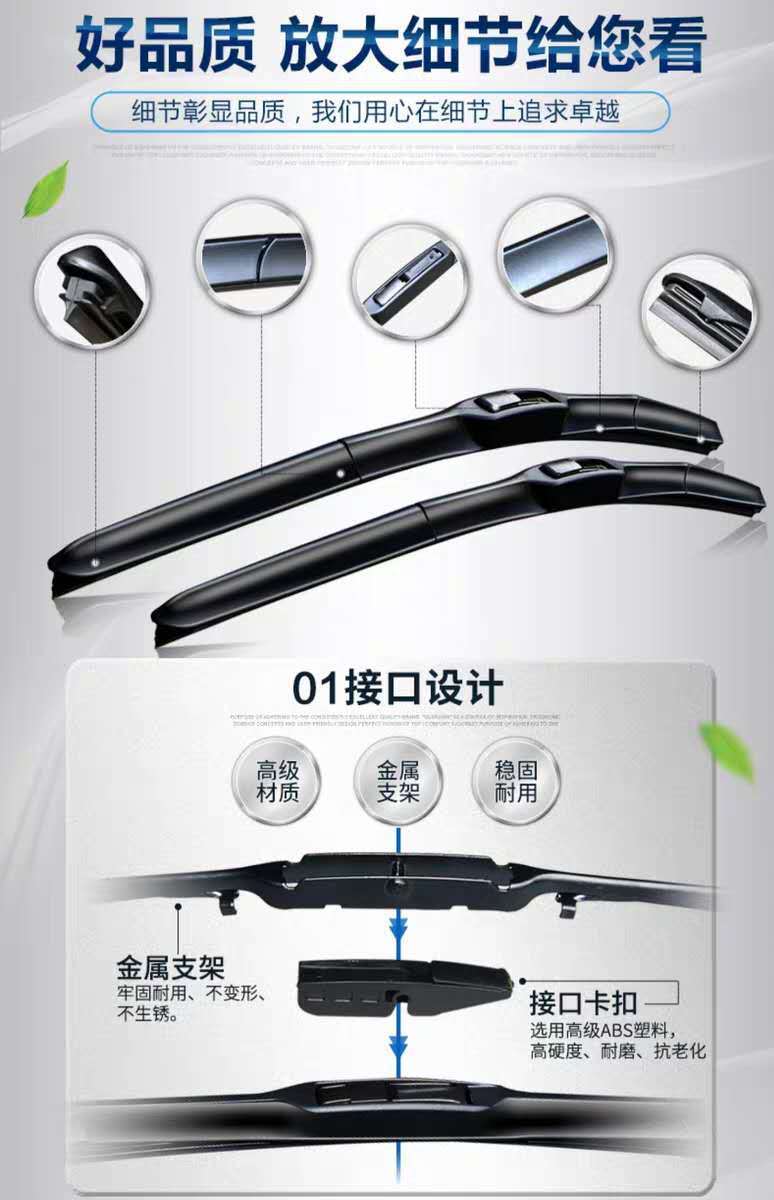 通用汽U车雨刮器三段式U型接口雨刮片无骨多车型雨刷器
