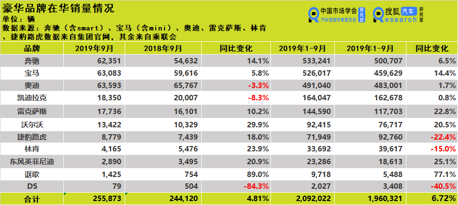 随之相伴的是市占率的进一步走高,今年前9月,豪车品牌实现了10.9%车市占比,这是对过去一年10%的进一步拉升。
