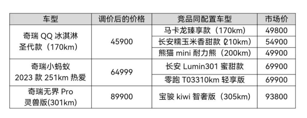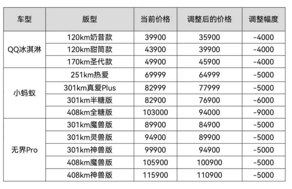 即日起,奇瑞新能源微型纯电车型价格正式回调。其中: