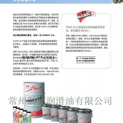 食品级齿轮油的性能食品级齿轮油是由公认安全(GRAS)的成分组成,基本无臭、无味,达到美国农业部USDA H-1食品偶尔接触标准,经过了NSF H1认证,食品级齿轮油用于用于食品加工设备的齿轮驱动或直角齿轮传动使用的。这些齿轮减速器生产商通常指定润滑油为防锈抗氧化油(R&O)或GL- 3型循环油。ISO粘度等级32、46、68和220满足和超过了“美国国防部**规格DOD-L-24651润滑油、食品级和食品加工设备”,此规范是由国防部的部门和机构批准使用。