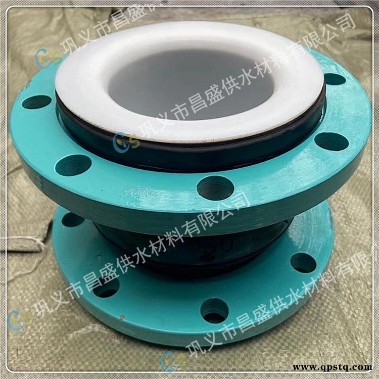 衬四氟橡胶接头系用于金属管道之间起挠性连接作用的中空橡胶制品。由内外层胶、帘布层和钢丝圈组成管状橡胶件,经硫化成型后再与金属法兰或平行接头松套组合而成。此产品可降低震动及噪声,并可对因温度变化引起的热胀冷缩起补偿作用,广泛应用于各种管道系统。该产品是昌盛公司采用气吹模具新工艺制造,系内胶层、中胶层、外胶层复合的球体和松套锻打低碳钢法兰组成的产品,具有耐压高、弹性好、位移量大、减振降噪效果好,安装方便等特点。除此之外该产品具有良好的耐酸碱性能,化学状态稳定,能够大大降低腐蚀性介质对于橡胶接头的侵蚀影响。
