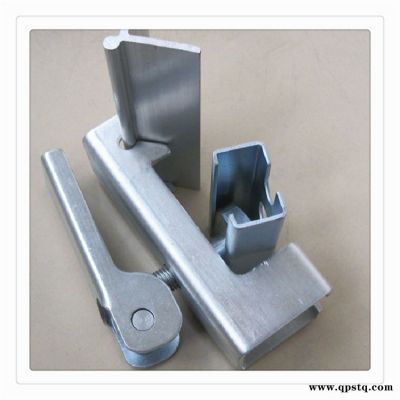 (产品结构):结构为手柄锁紧(也可以更改为螺帽锁紧方式),其结构使得装卸方便,可自行调整角钢两边压力,压紧角铝实现防溢裙板的有效固定。