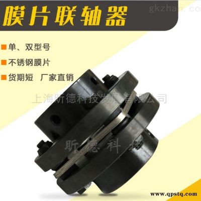 由几组膜片(不锈钢薄板)用螺栓交错地与两半联轴器联接,每组膜片由数片叠集而成,膜片分为连杆式和不同形状的整片式。膜片联轴器靠膜片的弹性变形来补偿所联两轴的相对位移,是一种高性能的金属强元件挠性联轴器,不用润油,结构较紧凑,强度高,使用寿命长,无旋转间隙,不受温度和油污影响,具有耐酸、耐碱防腐蚀的特点,适用于高温、高速、有腐蚀介质工况环境的轴系传动,广泛用于各种机械装置的轴系传动,如水泵(尤其是大功率、化工泵)、风机、压缩机、液压机械、石油机械、印刷机械、纺织机械、化工机械、矿山机械、冶金机械、航空(直升飞机)、舰艇高速动力传动系统、汽轮机、活塞式动力机械传动系统、履带式车辆,以及发电机组高速、大功率机械传动系统,经动平衡后应用于高速传动轴系已比较普便。